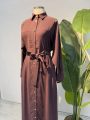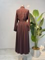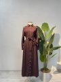 Boydan düğmeli tasarımı hem kullanışlı hem de modern bir görünüm sunarken, mürdüm rengin sofistike ve güçlü havası ürünü özel kılar. Günlük kullanımda tesettür günlük elbise olarak rahatlıkla tercih edilebilir; şık aksesuarlarla tamamlandığında ise tesettür abiye modelleri kadar iddialı bir görünüm elde edilir. Yeni sezon tesettür trendlerine uyum sağlayan yapısıyla hem klasik hem modern kombinlerde rahatlıkla kullanılabilir.