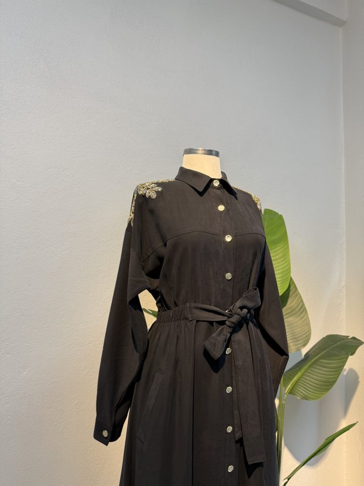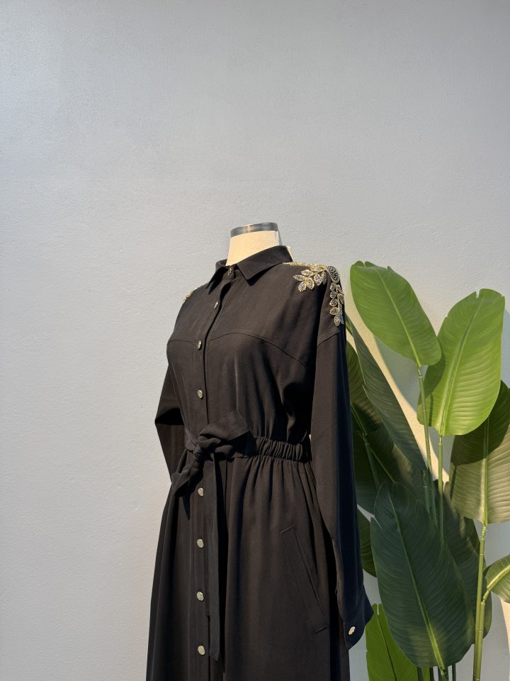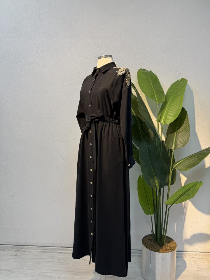 “Omuz Nakışlı Düğmeli Elbise – Siyah” ürünü için ilk yorumu siz yapın