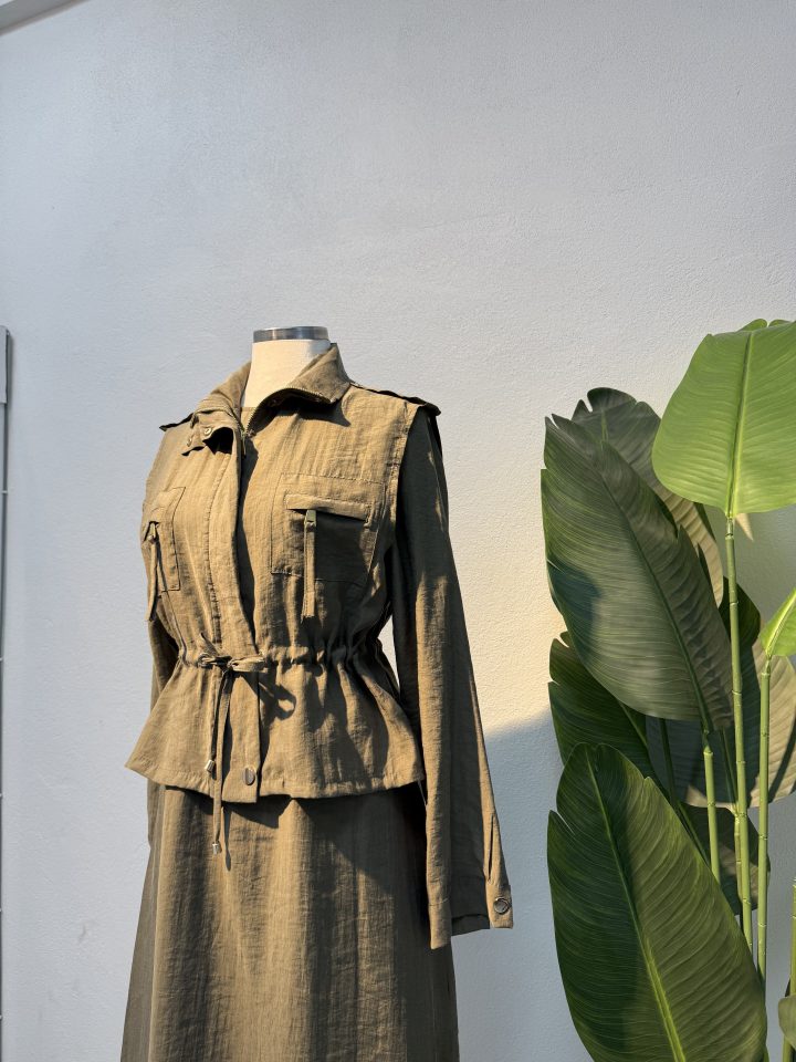 Entare Butik yeni sezon tesettür giyim koleksiyonunda yer alan Qupra Yelek & Elbise Takım – Yeşil, zarif ve fonksiyonel tasarımıyla modern şıklığı yeniden yorumluyor. Tensel kumaşın hafif, nefes alabilen ve dökümlü yapısı sayesinde gün boyu konfor sağlarken, 110 cm elbise boyu ile kapalı giyim stiline uygun zarif bir duruş sunar. Takımın yelek formunda tasarlanmış üst parçası, klasik ceket görünümüne alternatif olarak daha rahat ve dinamik bir stil oluşturur.