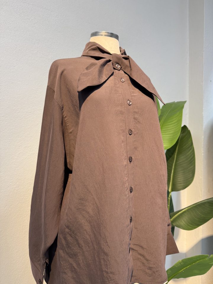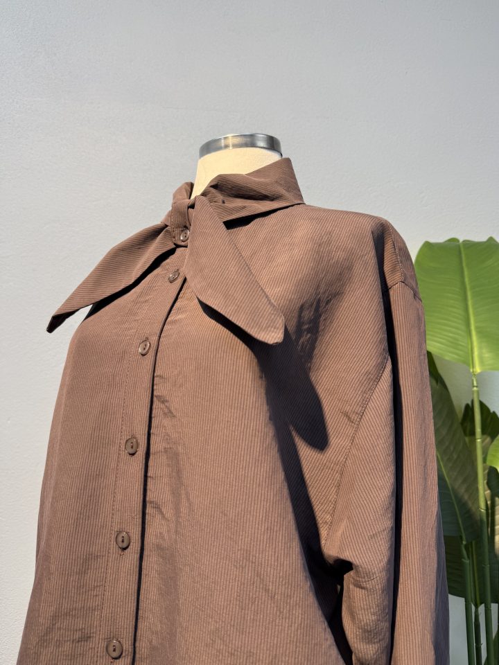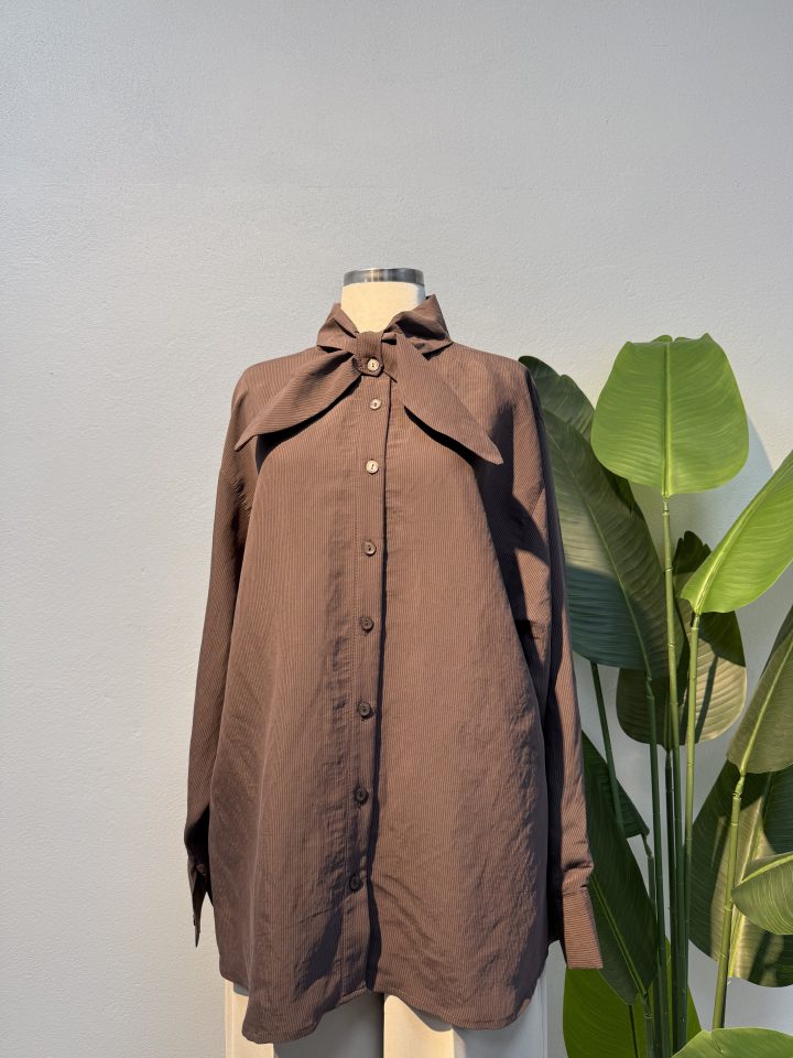 Yaka kısmındaki fiyonk detayı tasarıma feminen ve modern bir hava kazandırırken, kahverengi tonunun zamansız şıklığı kombinlere sofistike bir görünüm kazandırır. Tesettür tunik rahatlığında tasarlanan bu model, tesettür günlük elbise kombinlerinin üzerine veya klasik pantolonlarla birlikte kullanılabilir. Yeni sezon tesettür trendlerine uyumlu yapısıyla hem ofis stilinde hem de günlük şehir hayatında ideal bir seçimdir.