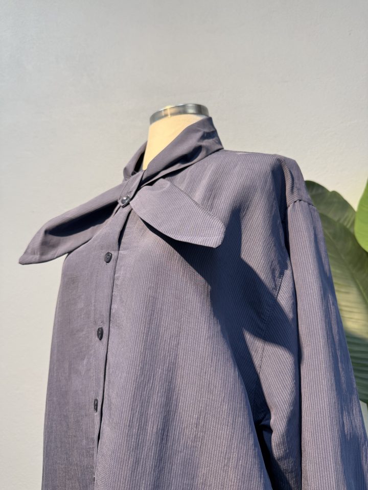 Yaka kısmındaki fiyonk detayı modele feminen bir dokunuş kazandırırken, lacivert tonunun klasik ve asil görünümü her ortama uyum sağlar. Tesettür tunik rahatlığında tasarlanan bu gömlek, tesettür günlük elbise kombinlerinde tamamlayıcı bir üst olarak tercih edilebilir. Yeni sezon tesettür trendlerine uygun yapısı sayesinde ofis stilinde, davetlerde ya da günlük şehir hayatında rahatlıkla kullanılabilecek çok yönlü bir tasarımdır.