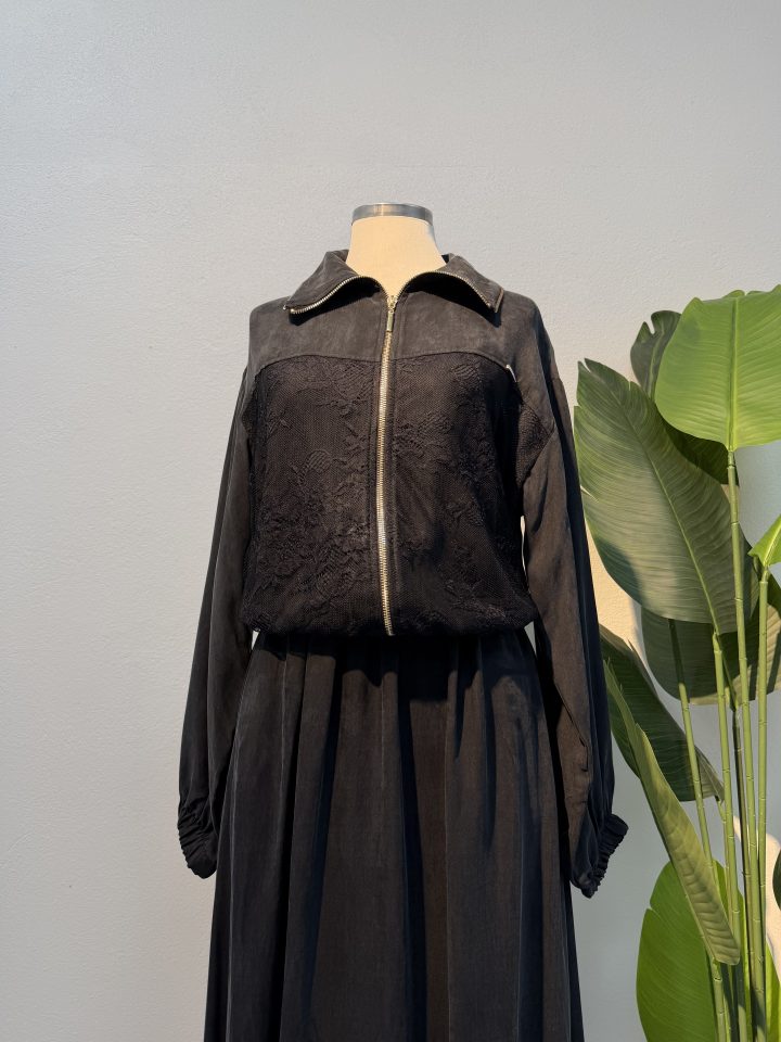 Entare Butik yeni sezon tesettür giyim koleksiyonunda yer alan Dantel Detaylı İpek Qupra Etekli Takım – Siyah, zarif detayları ve akıcı kumaş yapısıyla şıklığı konforla buluşturur. İpek&Qupra kumaşın hafif ve dökümlü dokusu sayesinde gün boyu rahat bir kullanım sunarken, siyah rengin zamansız asaleti her ortamda güçlü bir duruş sergilemenizi sağlar. 55 cm üst boyu ve 93 cm etek uzunluğu ile kapalı giyim stiline uyumlu, dengeli ve zarif bir siluet oluşturur.
