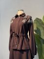 Mürdüm rengin güçlü ve sofistike havası, işleme detaylarıyla birleşerek ürüne dikkat çekici bir görünüm kazandırır. Özel günlerde, davetlerde veya şık organizasyonlarda rahatlıkla tercih edilebilir. Tesettür abiye modelleri kadar etkileyici bir duruş sunarken, sade aksesuarlarla günlük şıklıkta da değerlendirilebilir. Yeni sezon tesettür trendlerine uyumlu yapısıyla gardırobunuzun çok yönlü parçalarından biri olmaya adaydır.
