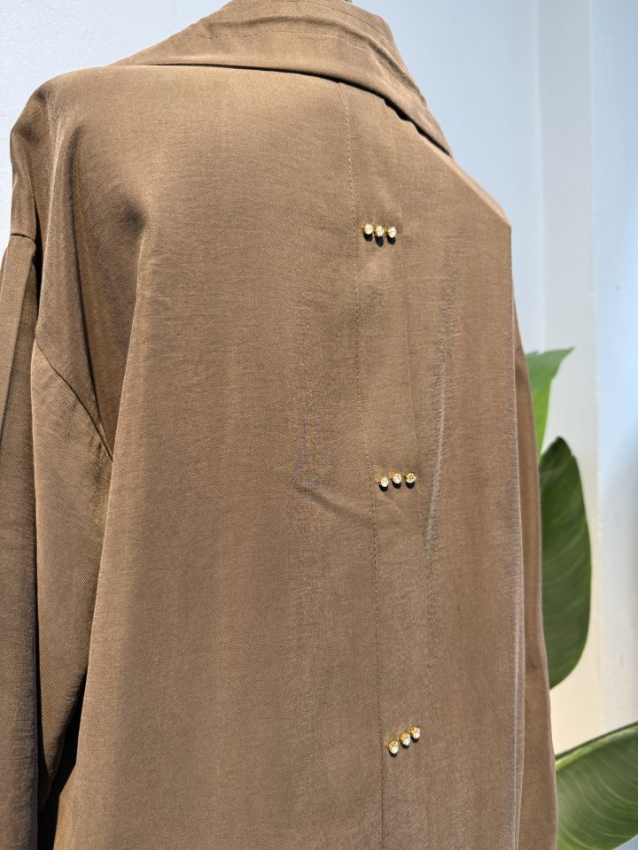 Entare Butik yeni sezon tesettür giyim koleksiyonunun dikkat çeken parçalarından biri olan Keten Qupra Arka Detay Pantolonlu Takım – Acı Kahverengi, güçlü ve sofistike tonu ile stil sahibi kombinler oluşturmanızı sağlar. Keten&Qupra kumaşın hafif ve nefes alabilen yapısı gün boyu konfor sunarken, 85 cm uzunluğundaki üst tasarımı kapalı giyim stiline uygun, rahat ve modern bir duruş kazandırır. Arka detay tasarımı sade formu hareketlendirerek tasarıma özgün bir hava katar.